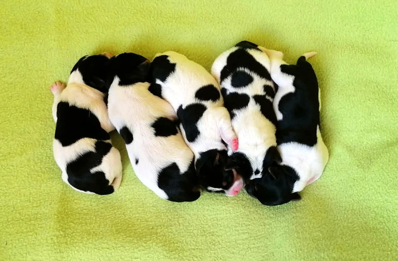 31. března jsme v naší chovatelské stanici přivítali první vrh farmaříků !!! Sašenka byla moc statečná a šikovná … Podarovala nás jednou holčičkou a čtyřmi klučíky . Všem se daří výborně. Zlatíčka baští, přibývají na váze a ze Sašky je vzorná a pečlivá mamina.