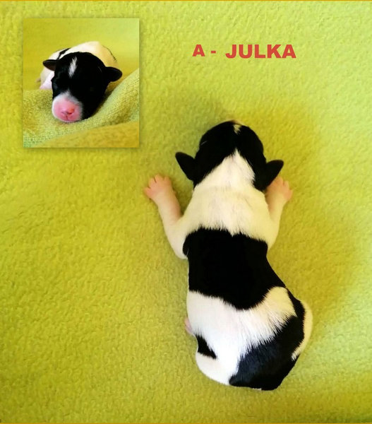 - Zdraví – výška 37 cm, nůžkový skus, chybějící zuby – P1 oba dole, dlouhý ocas, PLL DNA N/N ( clear ), DKK A/A, LP 0/0. Vyšetření srdce v normě, bez nálezu. DNA genetický profil