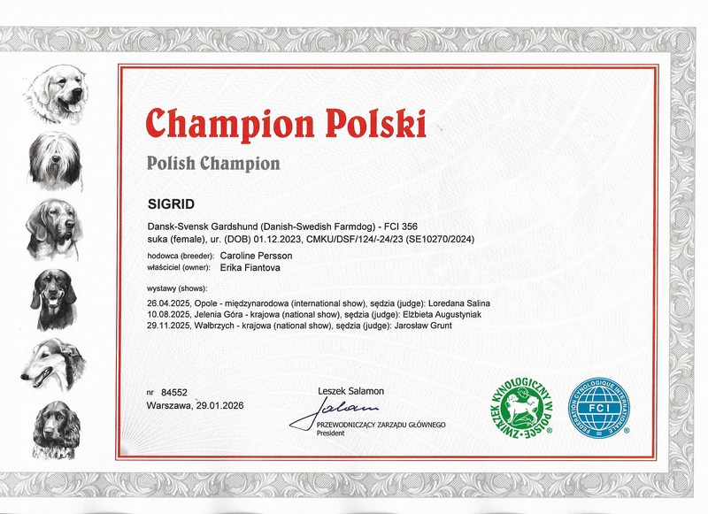 - Úspěchy: Interchampion – Junior, Polský šampion, Slovenský šampion krásy mladých, Český junior šampion, Polský junior šampion